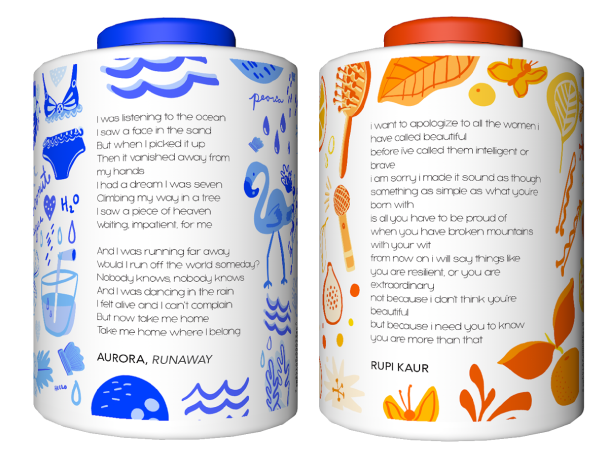 A story on every bottle. Our new packaging's wide cylindrical shape allows use to have more room to add more content and art. With every scent there is a story that matches the scent's "personality". With every Herbal Essences Shampoo and conditioner we will promote female authors and female led stories. Herbal Essence can help ignite the imagination of a new generation of "The Fearless".