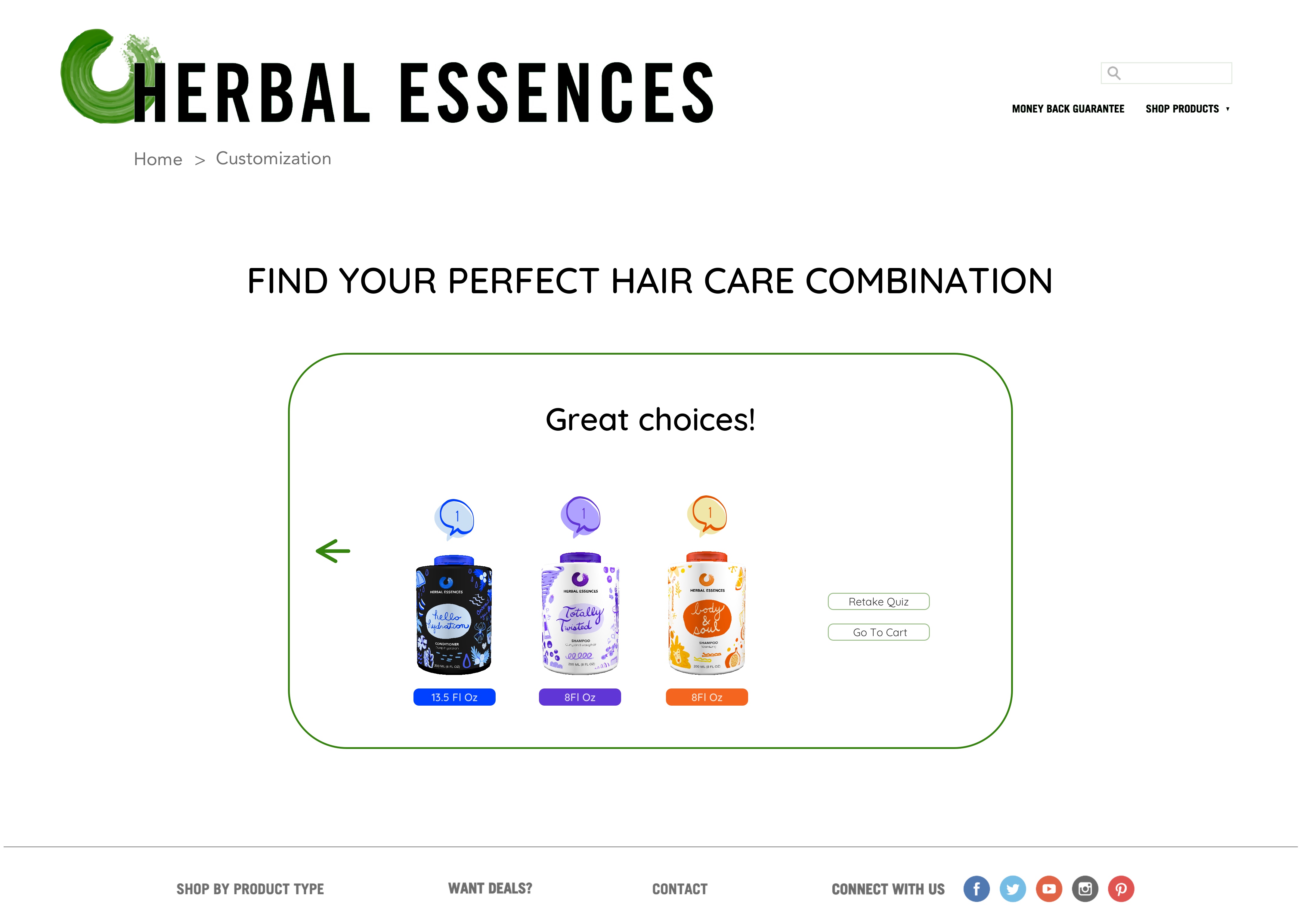Based on what type of hair you have and what type of hair benefits you're looking for, Herbal Essences will recommend the best products in their inventory.